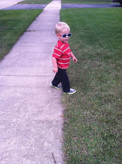 We also usually get a little sidewalk jog action (that I think he learned from watching the "Gangnam style" video).